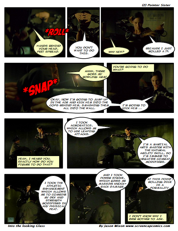 Here we get a glimpse of Chad’s character, Trinity, in action. Chad is your typical min/maxer. For those who aren’t familiar with the term "min/maxer", it’s a person that looks at a game and creates an optimized character based on the rules, loopholes and arcane majicks. The result is typically a super character that the game designers never dreamed could be created. Min/Maxers typically have an intimate knowledge of the rules of the game rivaling that of even the rules lawyer (which will be discussed in a future episode).